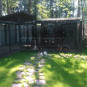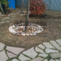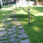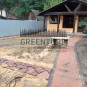 Изначально планировалось сделать работы по устройству посевного «теневого» газона, сорт GreenParkShadowLawn. В процессе добавилась система автоматического полива, спортивная площадка, тропинки из натурального камня, декоративные деревья и кустарники.